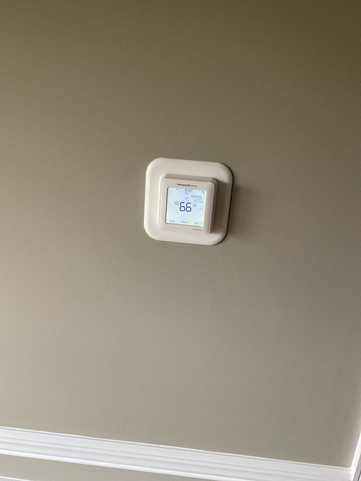 11-26-25 customer called in for no heat on first floor system. Found blank thermostat upon arrival, check all 24 volt safeties. Ok all wiring ok. Thermostat getting 24 volts to base. I removed thermostat wires and reconnected them. Thermostat came on test heater operation ok. Provided estimate to replace thermostat customer approved replacement of thermostat, Replacement of thermostat t6 WiFi test system operation setup thermostat to single heat single cool conventional, customer will have to add thermostat to phone app.