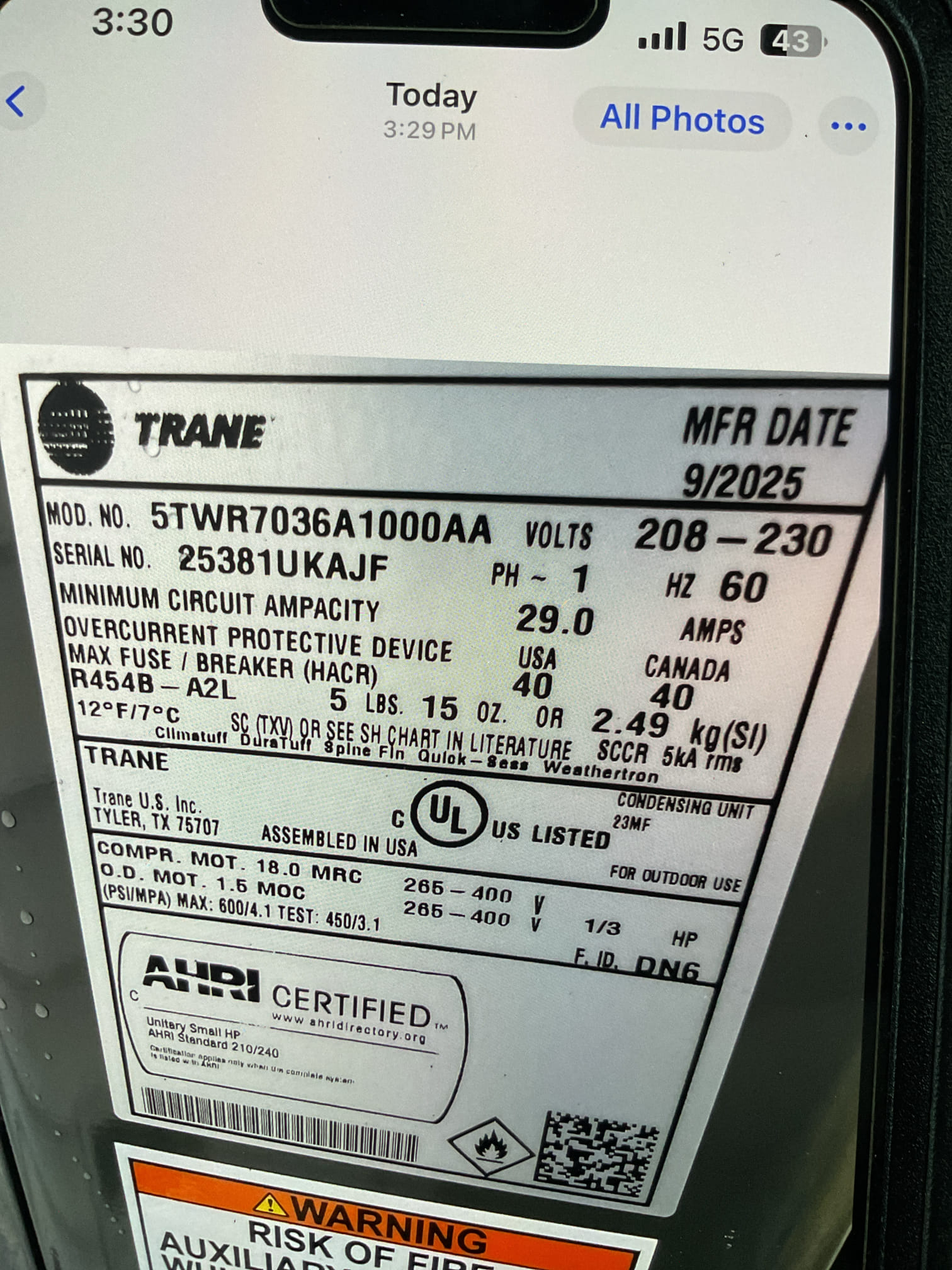 Remove leaking outdoor unit and replaced with new train two stage heat pump outdoor. Made all necessary connections pressure tested evacuated and charged to standards. System is running to manufacture specifications at this time. Get a couple signatures. What’s up? I’m on my way back to the shop. You hurt my brain right now.